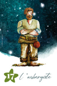 En arrivant à l’hostellerie de Lapalisse, l’aubergiste semblait lessivé ! épuisé ! Alerté de l’arrivée des mages, il a passé des heures à récurer l’auberge, envoyé sa femme laver tout le linge (vous l’avez croisée non ?) Et quand les mages sont arrivés ils ont juste voulu aller se coucher, sans dîner, c’est vrai qu’après un si long voyage on ne peut pas leur reprocher… !! Alors quand l’enfant lui demanda si Lëon pouvait voir Gaspard, Melchior et Balthazar, l’aubergiste leur répondit :