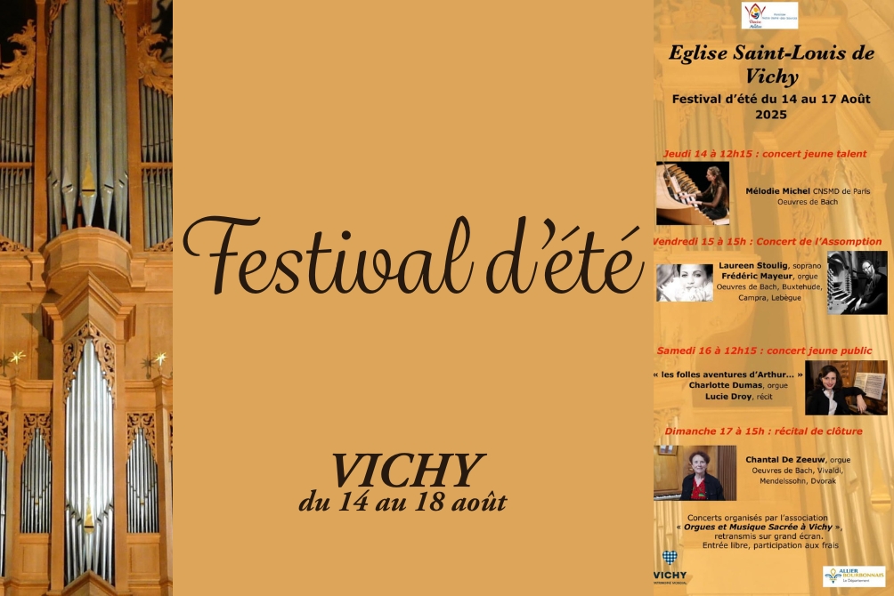 Concert de Noël L'association "Orgues et Musique sacrée à Vichy" , ... 14 Déc 15:00 - 18:00 Église Saint-Louis Vichy