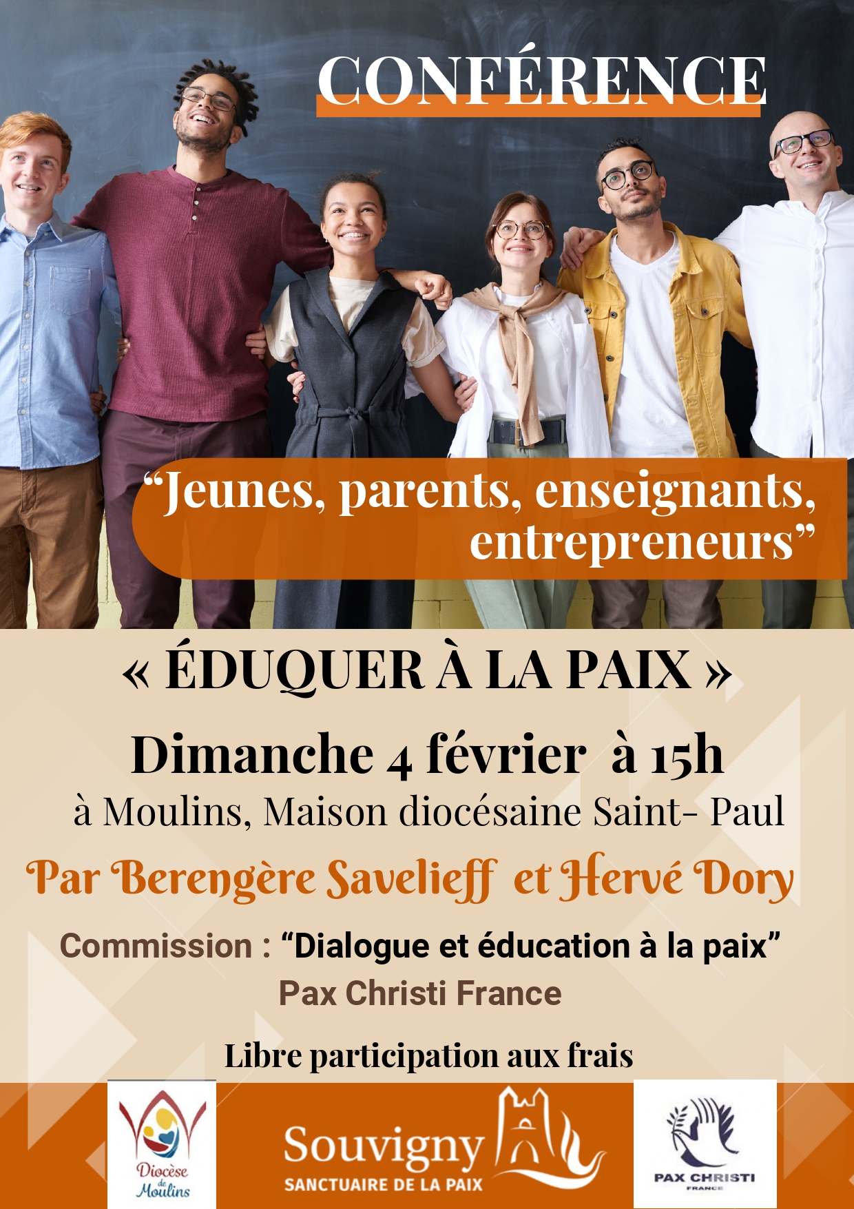 Art, culture & foi vous invite à la conférence « Eduquer à la Paix » – Dimanche 4 février à 15h00 à la Maison diocésaine Saint-Paul à Moulins