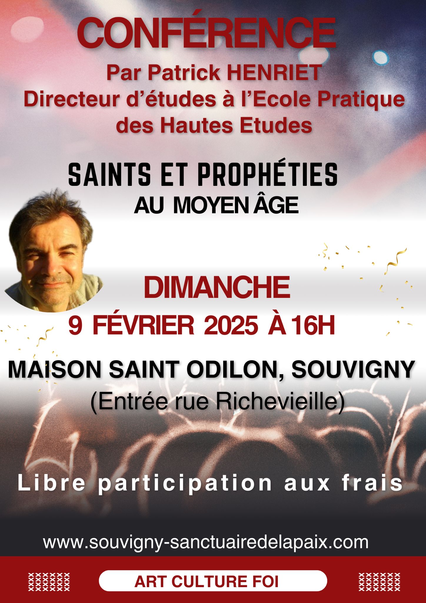 Il sera l’invité d’Art Culture et Foi le dimanche 9 Février 2025 à Souvigny pour présenter une conception de l’idéal spirituel du Moyen Age à travers la sainteté et la prophétie .