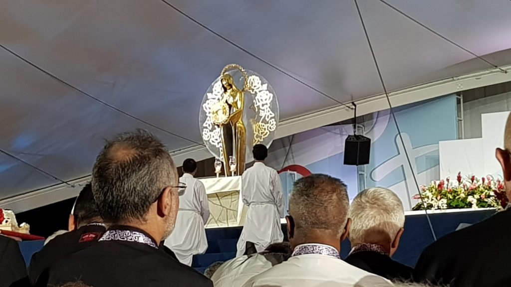 « En ce week-end final des JMJ de Panama, le Pape François a longuement médité sur la place de Marie dans l’histoire du salut, ainsi que sur l’actualité de son « OUI » à l’appel du Seigneur. Toute jeune qu’elle était, Dieu lui a fait confiance pour qu’elle donne corps au Sauveur et qu’avec elle « l’Espérance renaisse ». Ainsi, le Pape François a invité les jeunes à entrer en eux-mêmes pour discerner la réponse qu’ils donneront à l’appel de Dieu. Le temps d’adoration et le long moment de prière silencieuse du pape François devant la statue de Notre Dame de Fatima au cours de la veillée de samedi concrétisèrent son appel à mettre nos pas dans ceux de Marie. »