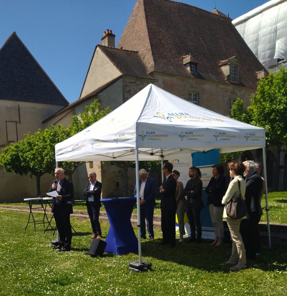 Ce jour sous la présidence de Mgr BEAUMONT, évêque de Moulins, Claude RIBOULET, Président du Conseil départemental de l’Allier, Pierre-André PÉRISSOL, Président de Moulins Communauté, Michel BARBARIN Maire de Souvigny, et en présence de Christophe Noël du PAYRAT Préfet de l’Allier a été posée la première pierre du « Grand site Clunisien de Souvigny » lieu culturel, cultuel, patrimonial et historique.