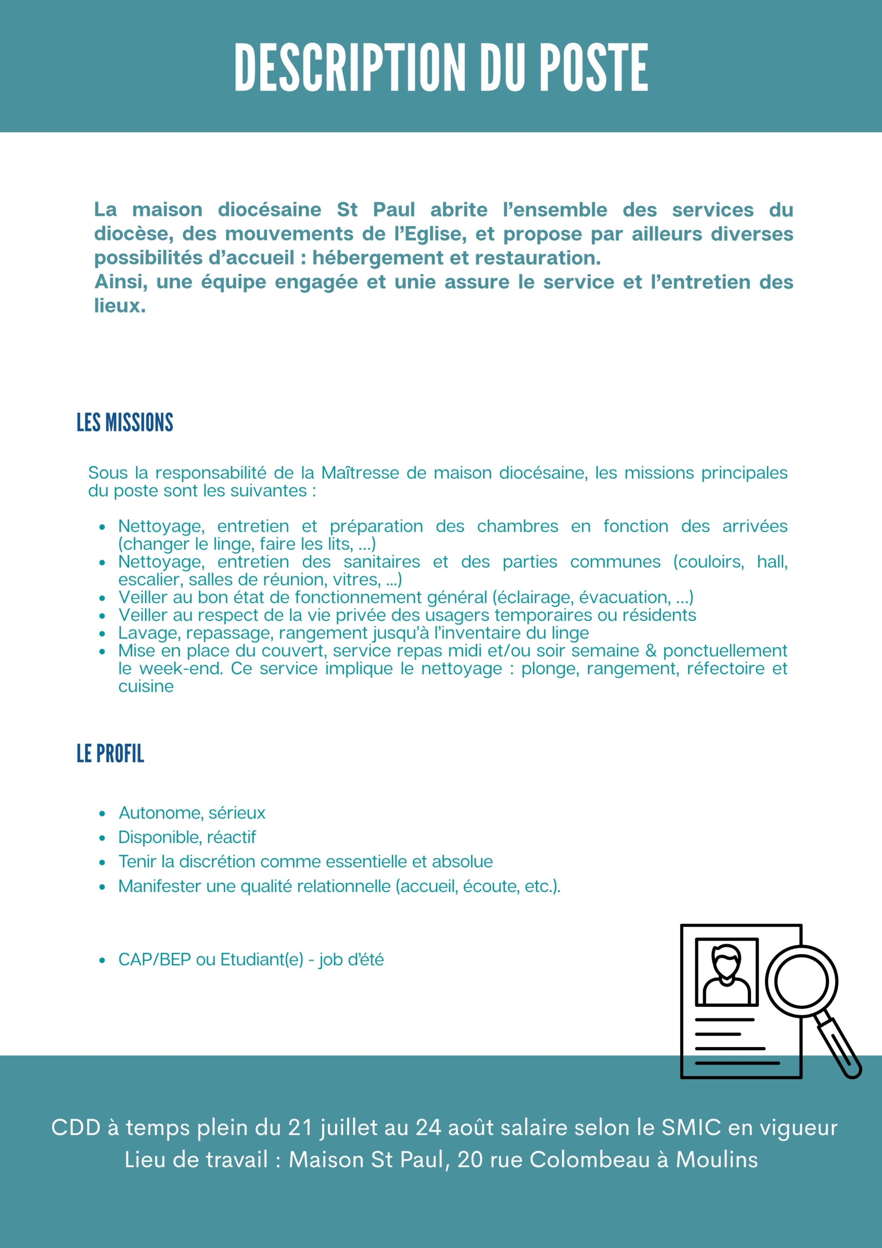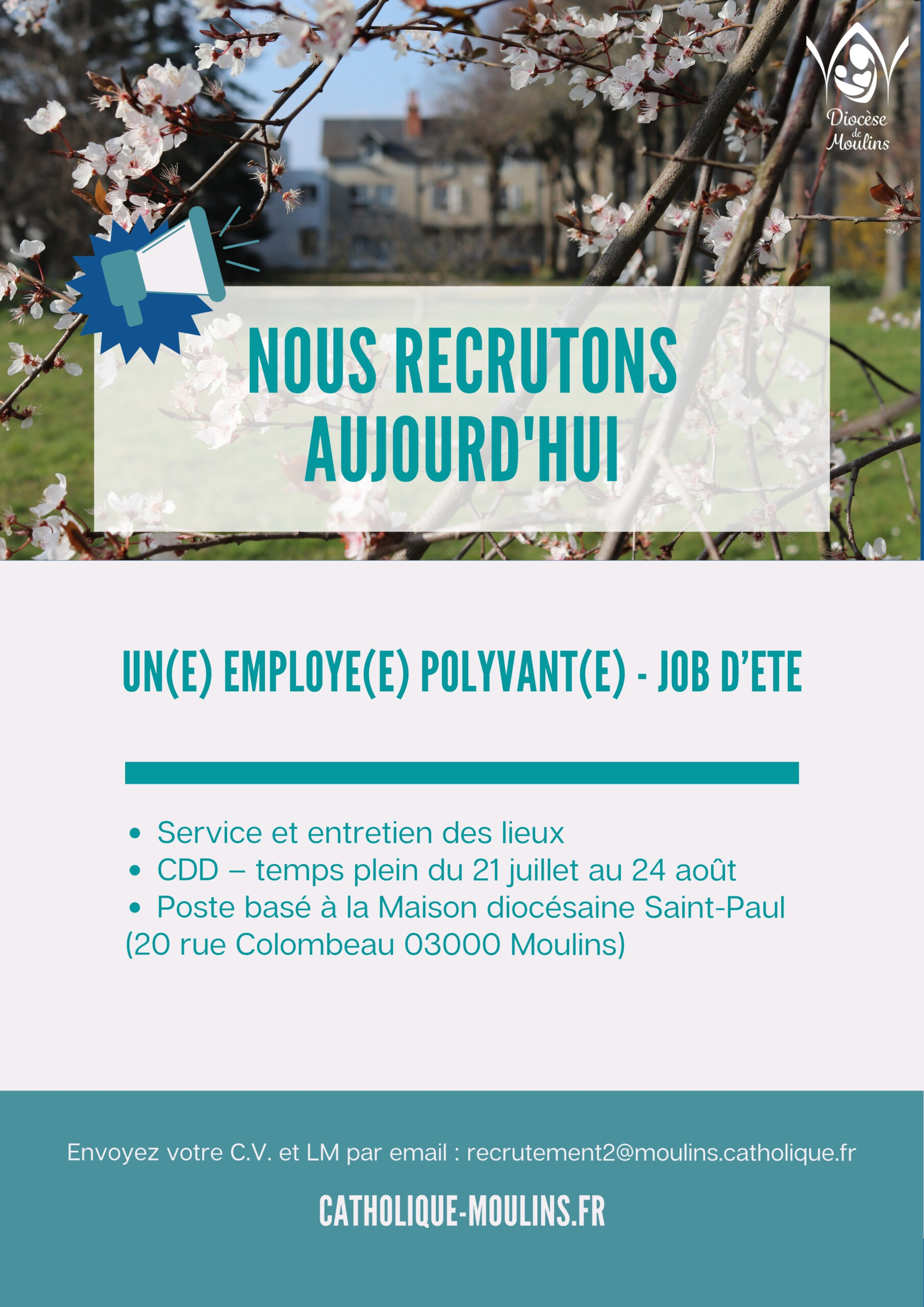 Envoyer CV (avec photo) et lettre de motivation à : recrutement2@moulins.catholique.fr