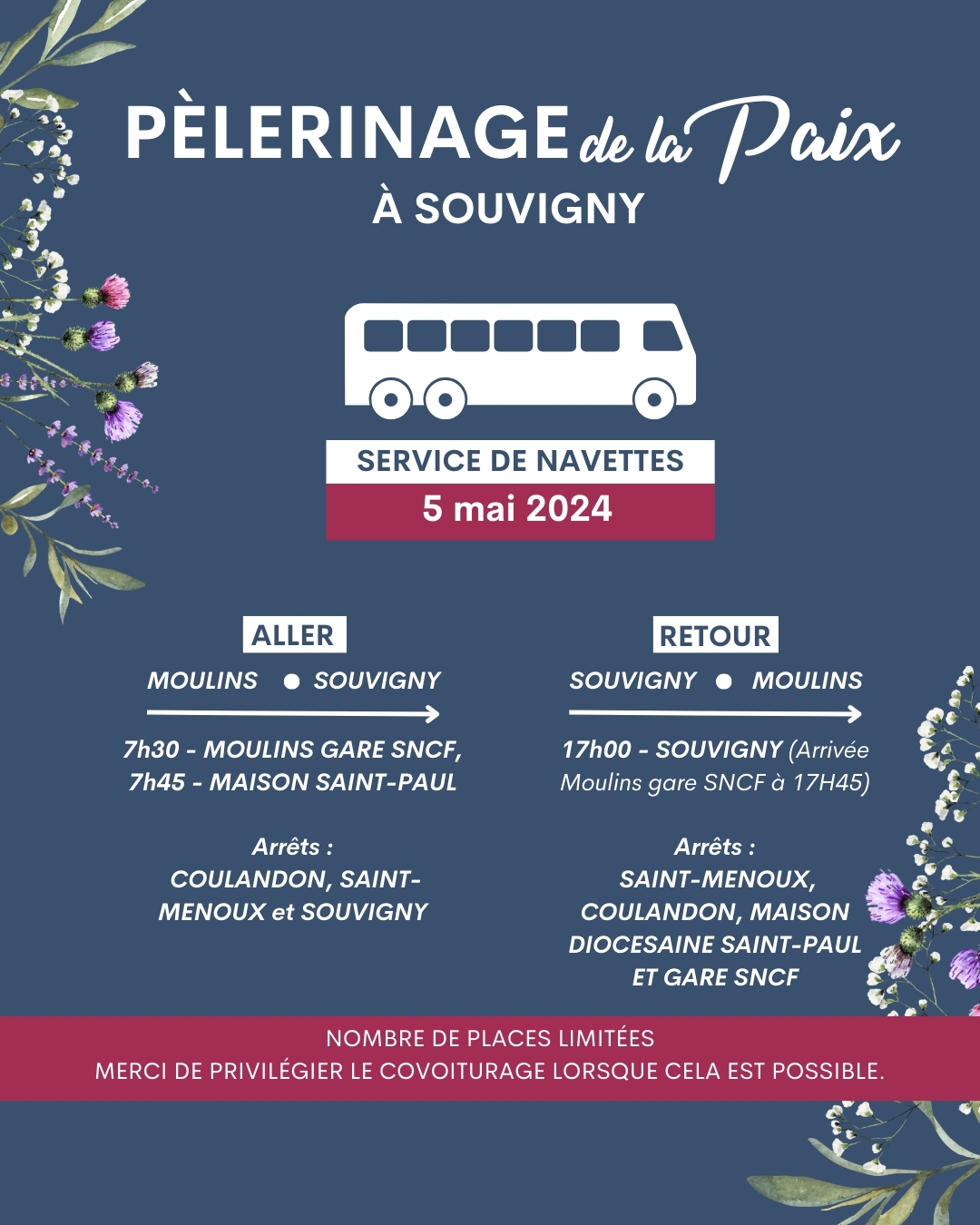 Le pèlerinage de la Paix à Souvigny a eu lieu les 4 et 5 mai 2024 sur le thème « Eglises d’Orient à l’épreuve de la paix ». Pèlerinage sous la présidence de Mgr François Kalist, archevêque de Clermont.