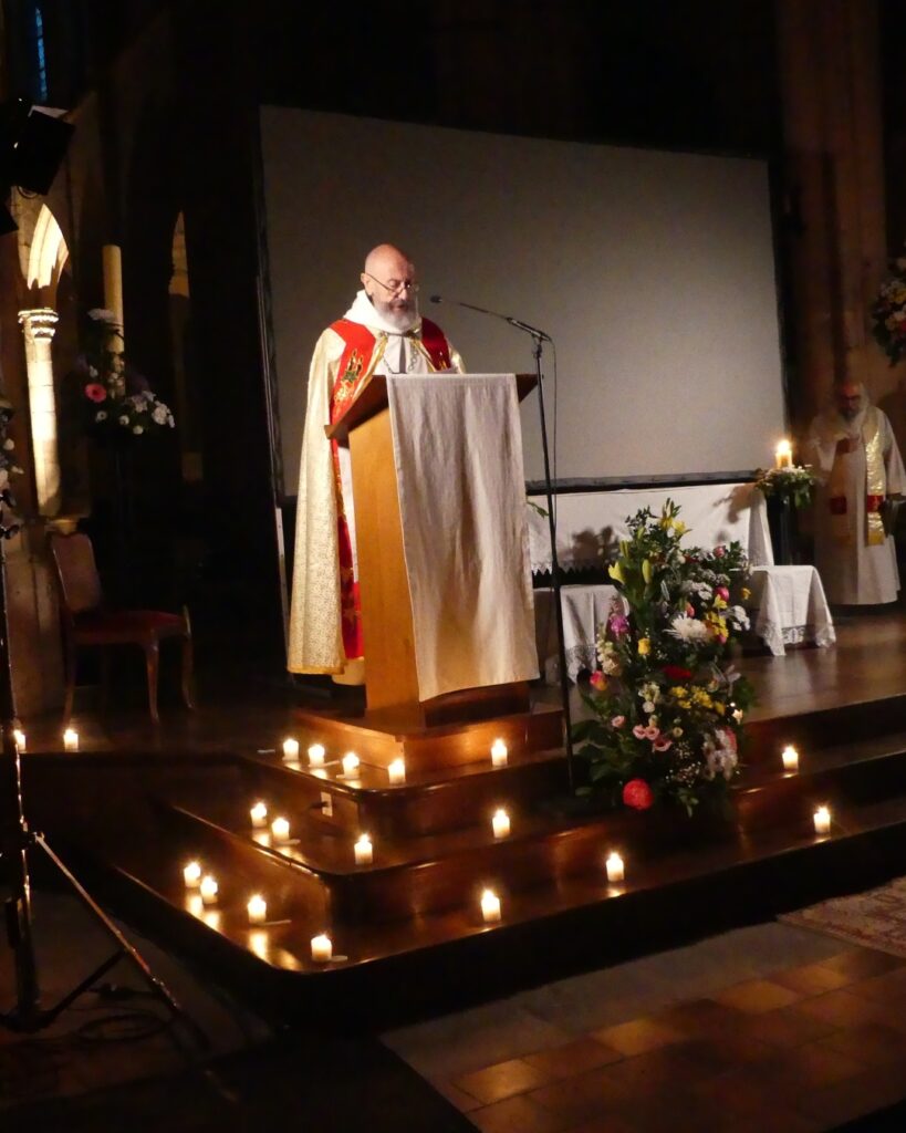 … par une veillée aux bougies dans la prieurale organisée par le père Jean-Marie Humeau (vicaire épiscopal – ordinariat des orientaux) et L’Œuvre d’Orient en présence de SE Mgr Rami Al-Kabalan, visiteur apostolique des syriaques catholiques.