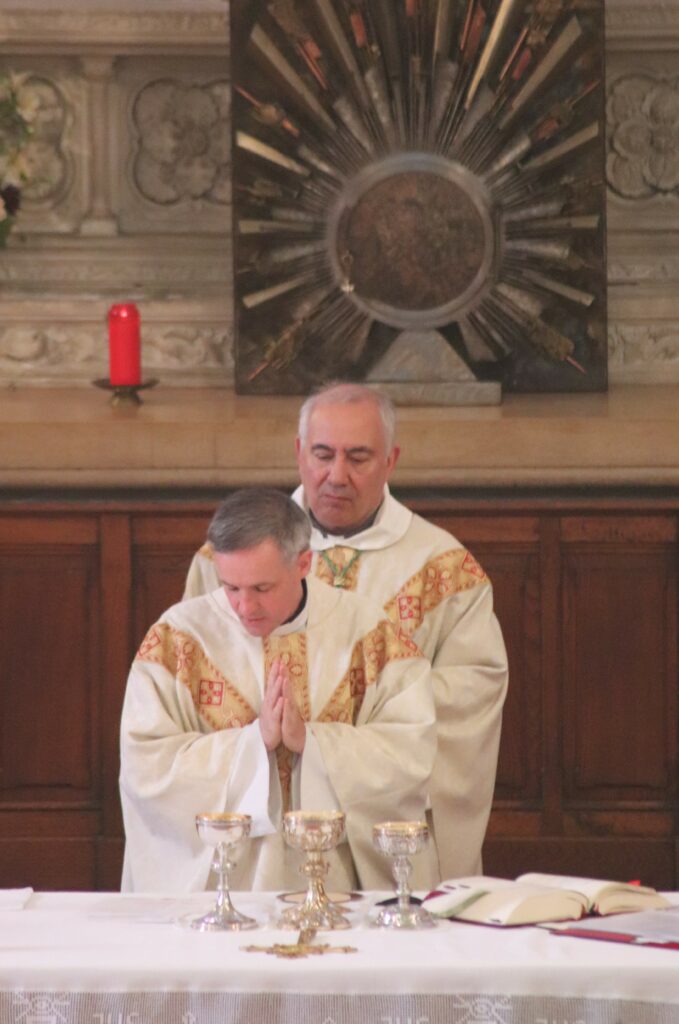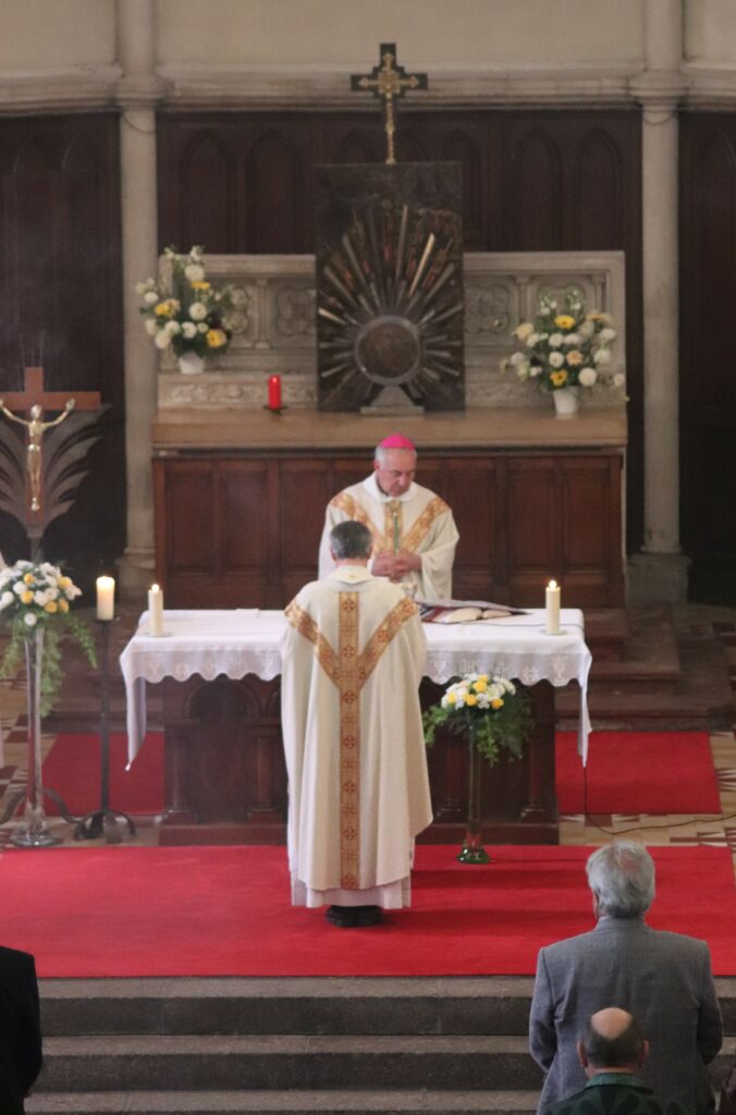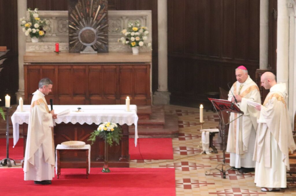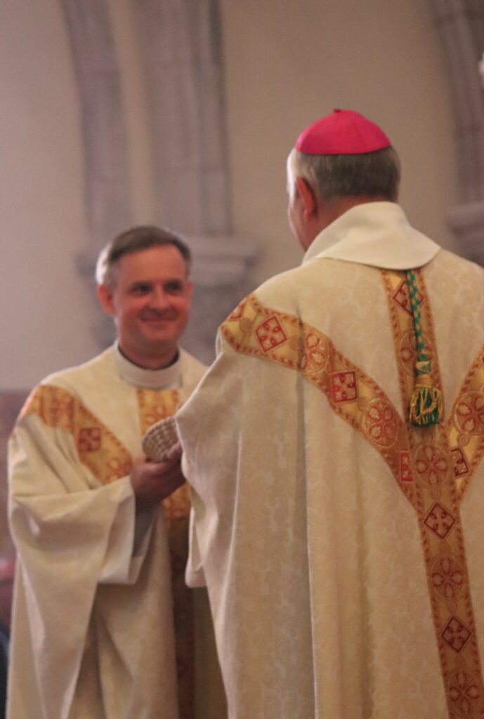 Le nouveau curé renouvelle les promesses de son ordination et reçoit la bénédiction de l’évêque.