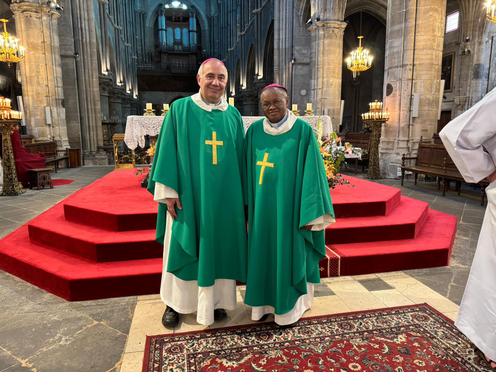 Le souriant prélat était entouré d’une dizaine de prêtres missionnaires servant actuellement en France au sein de différents diocèses. Mgr Marc Beaumont a chaleureusement clôturé la célébration en offrant en souvenir à son invité une reproduction du tryptique du maître de Moulins, actuellement en restauration aux ateliers du Louvre.«