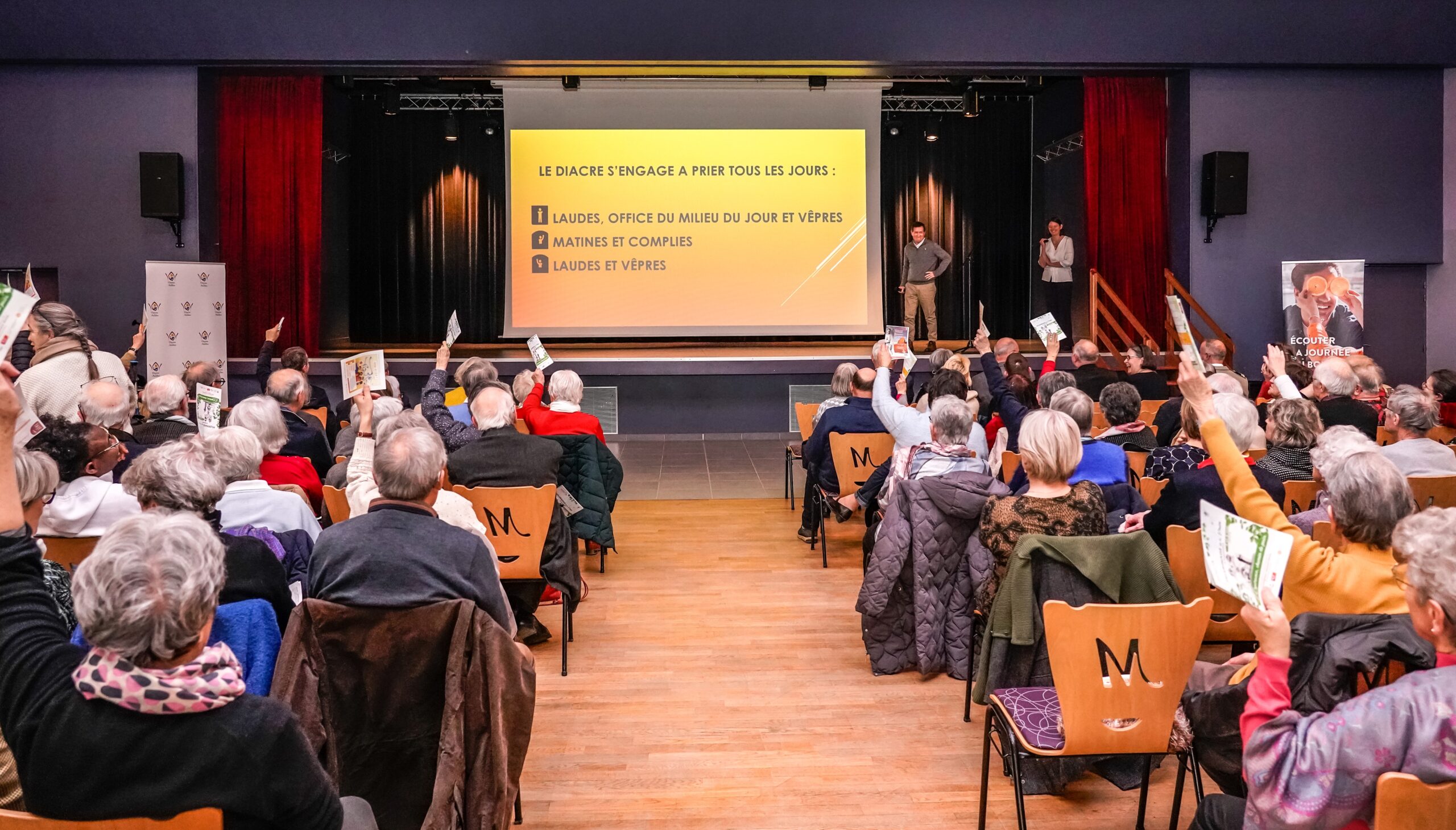 Après la projection d’une vidéo retraçant les temps forts de l’année 2024, les diacres du diocèse ont proposé un quizz sur le diaconat permanent (qui fête cette année les 60 ans de sa réinstauration), ainsi qu’un ensemble de témoignages des enfants de diacre.